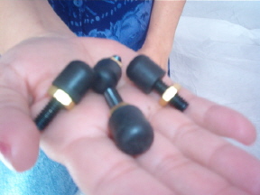 Gather four bushing assemblies. Each one should have a screw, a nut and a rubber cap. We