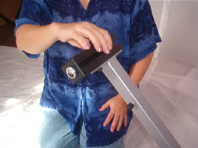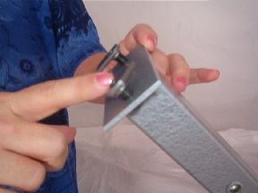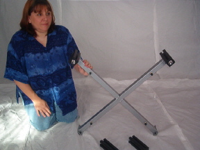 Slide a column onto the end of the X-frame. It does not matter which direction the