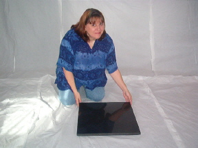 Place one of the shelves on the floor with the granite side facing upward.