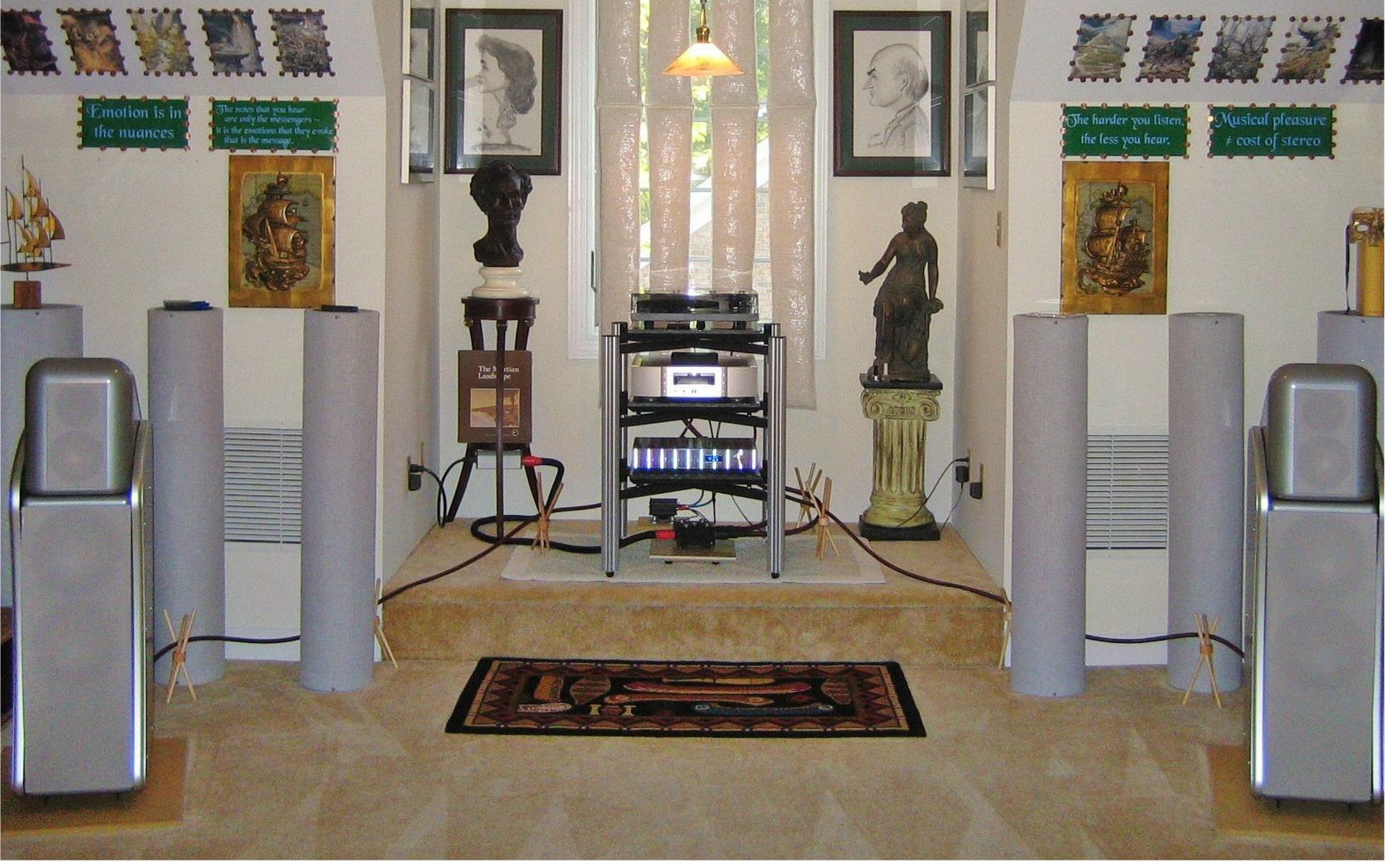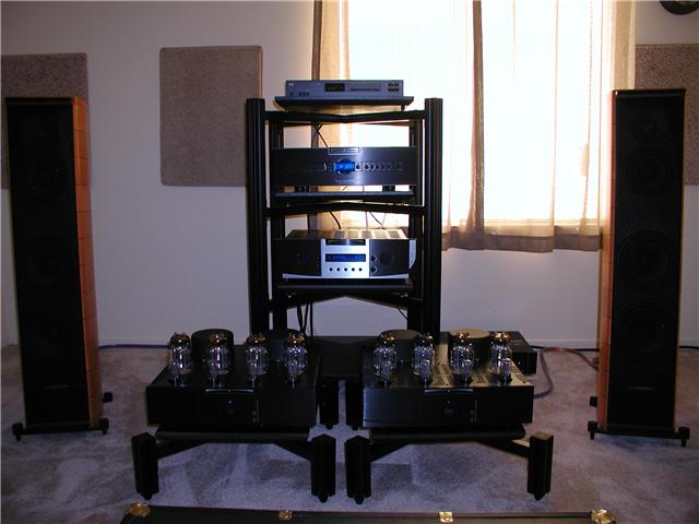We combine the granite slab with a sheet of medium density fiberboard (MDF) which has excellent anti-resonant properties (that is why MDF is widely used in the manufacturing of speaker enclosures). The bonding is achieved through the use of our proprietary anti-resonant conduction material. Our secret is is in the way energy is transmitted back and forth between the different materials. The material mis-match is deliberate and well executed. Next, we calculate the best points in which to support the slab such that it tries to oscillate outside of the stones natural resonant frequency thus affecting its ability to "ring". The granite is essentialy coupled through the supporting frame and on to the floor. The result is a "rock solid" and quiet platform for your components. You'll here the true timbre of the music with no added coloration.