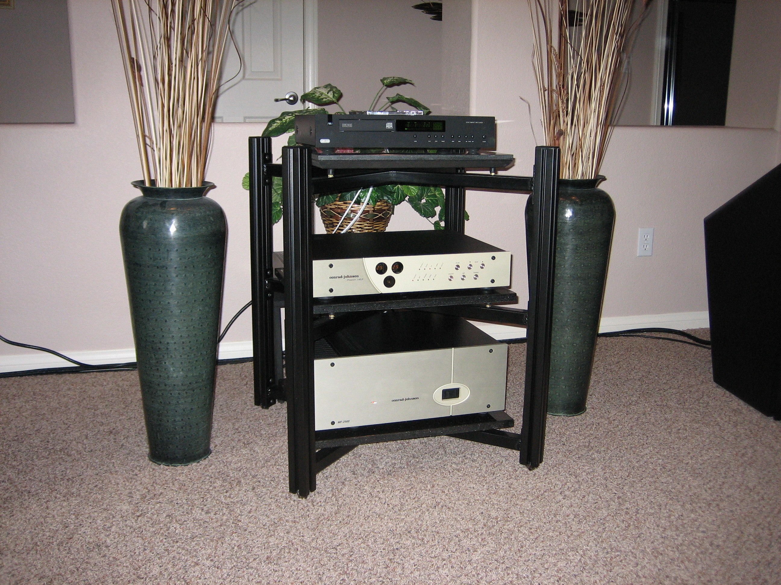 This Adona classic four-shelf audio rack is fully compatable with the rest of the 45 Series. This is the classic version of the rack that earned Adona Corporation a place in the high-end audio arena. It's sonic signature is completely flat throughout the entire audio spectrum. You'll experience incredible focus, life-like sound stage and tight bass response. All without any perceived added coloration. This design has remained unchanged since the first units were sold back in 2001. Many of our customers have been happy to find out that over eight years later they can still add more shelves to their existing rack, and everything looks the same and fits perfectly.