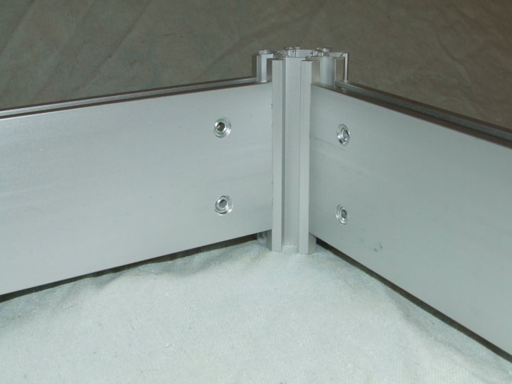 Extruded aluminum cross-beams, machined ends with pre-installed connector assemblies. A universal T-slot runs along the top edge, making it easy to intall after-market coupling and wire-management devices.