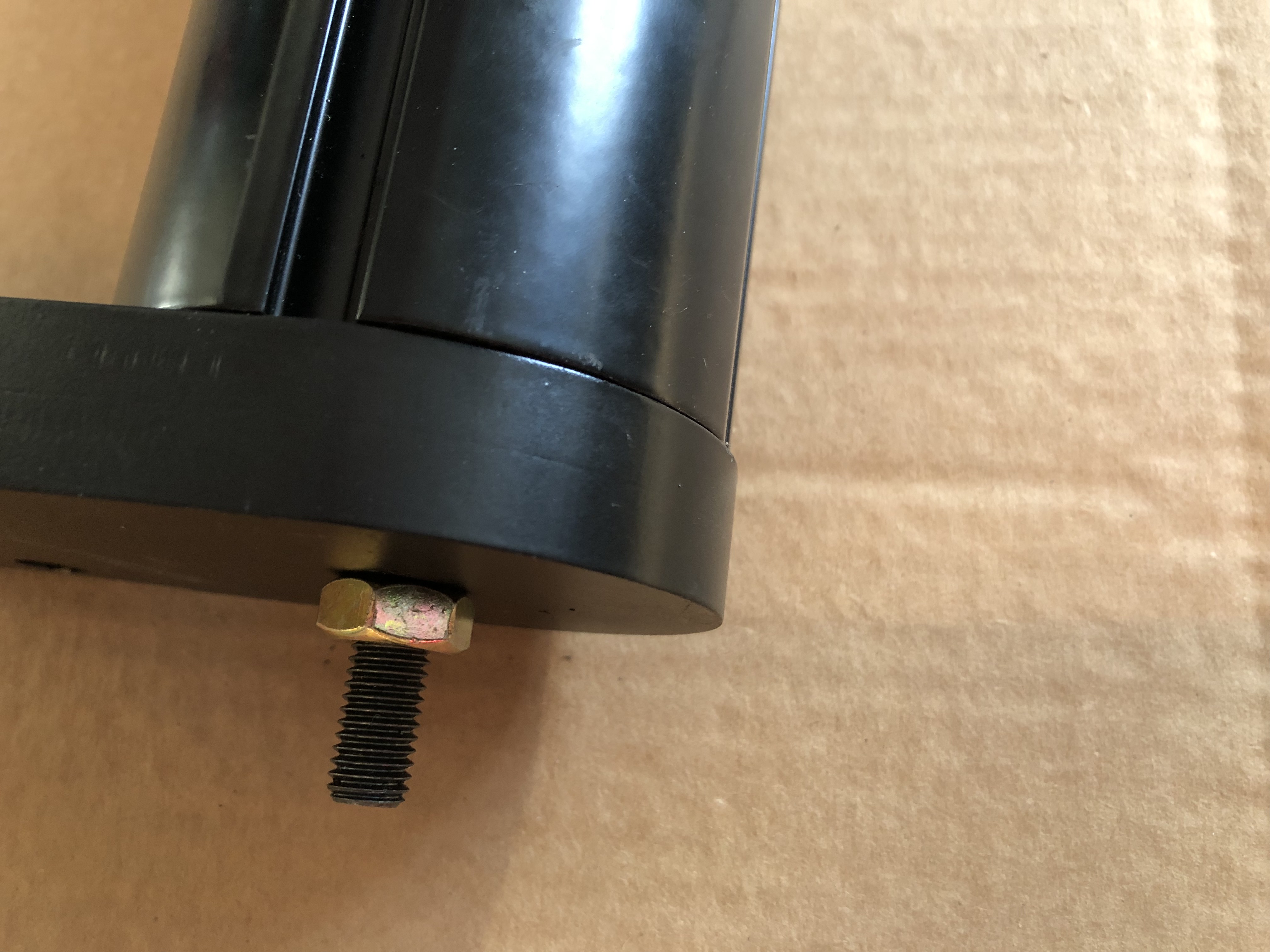 Guide one of the large flat-head bolts through the top cap, through the frame and into the top of the column.