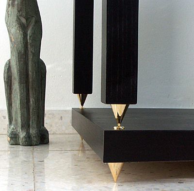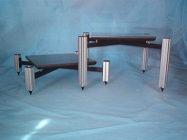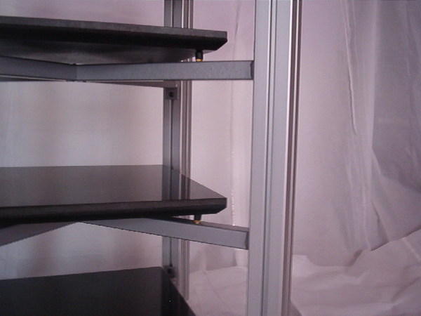 These 45 mm square columns weigh in at nearly a pound and a half per linear foot. They are much stronger than similar-appearing columns used on our competitors products and also use larger fasteners. The precision extruded aluminum columns, borrowed from other industries, are typically used in the manufacture of machinery frames. Aluminum is a good choice for audio racks since it transmits vibration energy quite well down it's longitudinal axis, where it is easily drained by your floor.